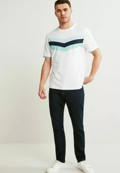 Next Herren BLOCKED – T-Shirt Print – White Blue Chevron