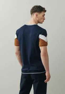 Next Herren BLOCKED – T-Shirt Print – Navy Blue Tan Brown
