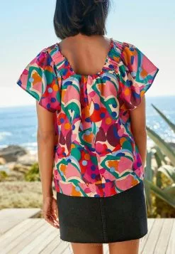 Next Damen FLUTTER SLEEVE SQUARE NECK – Bluse – Pink Geo Print
